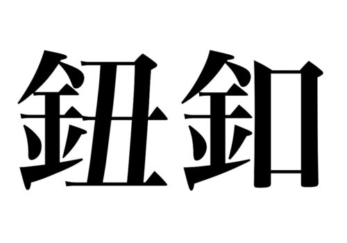 鈕釦(ちゅうこう) ボタン。 「鈕」 ①つまみ。とって。器物の、手で持つところ。「印鈕」 ②ボタン。 ここでは② ≒ 「釦」 ①ボタン。 ②かざる。ちりばめる。 ここでは①